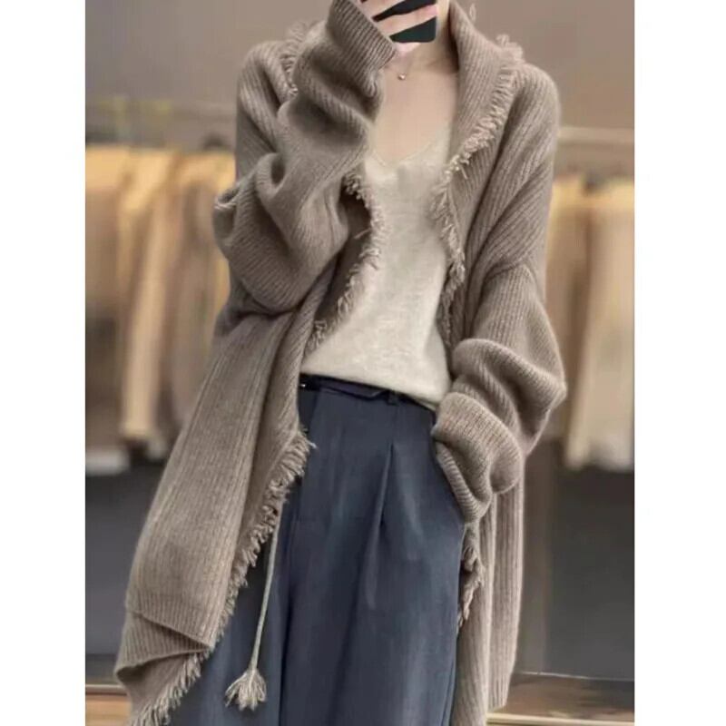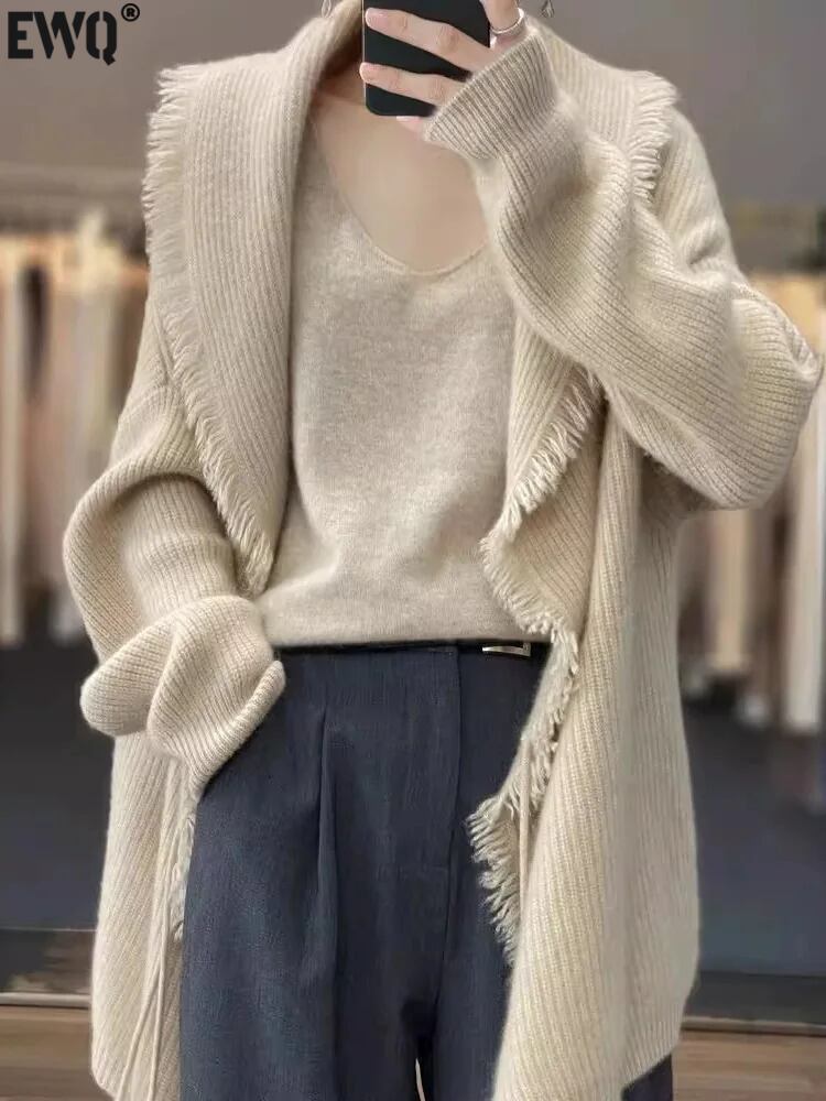 Ewq-With 長袖アプリコットタッセルニットカーディガン,オールマッチカジュアルセーター,キャメルコート,ファッション,秋,16o1625,