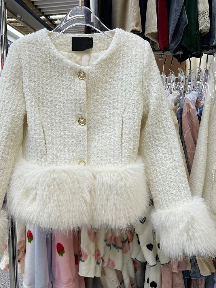 [Ewq] Social ite Luxus hochwertige Pelz Patchwork Langarm Webart Tweed Jacke lässig loss Frauen Jacke Herbst 2024 Winter ウィンター 冬物