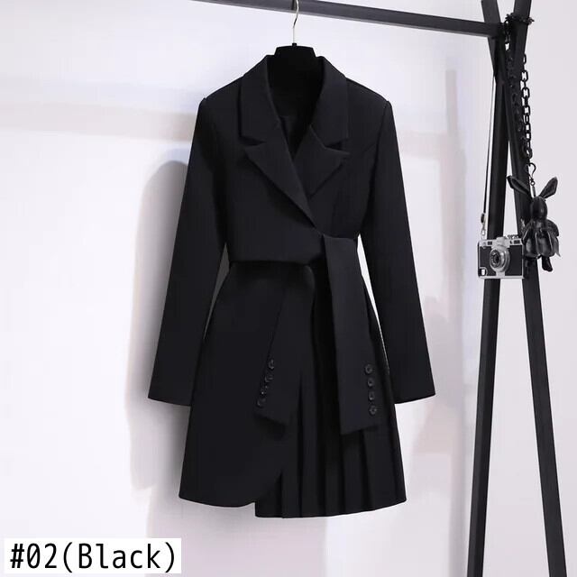 [Ewq] モード音律 Einreiher Verband Blade Kleid gespleißt Falten kleider für Frauen Herbst neue Flut gz335