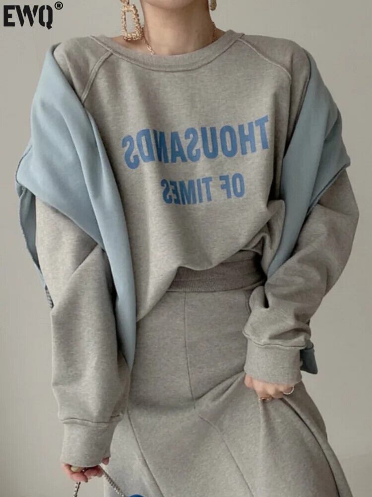 [EWQ] シック両面スウェットシャツ長袖 O ネックレタープルオーバートップス 2024 秋 16O1940 ロング オータム 秋物 Oネック