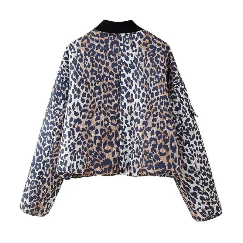 [Ewq] American Tide Langarm Stehkragen Reiß verschluss Baumwoll jacke LeopardenMuster Dicke Frauen Mäntel Winter 2024 Herbst neu 16 o1595 ウィンター 冬物