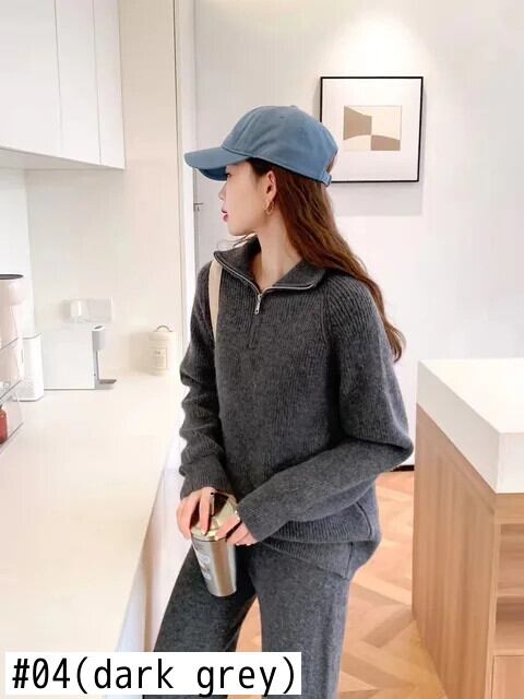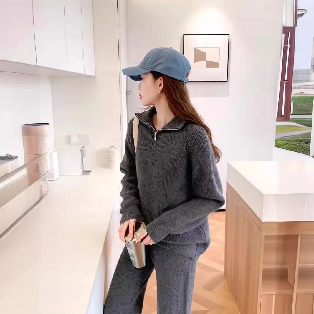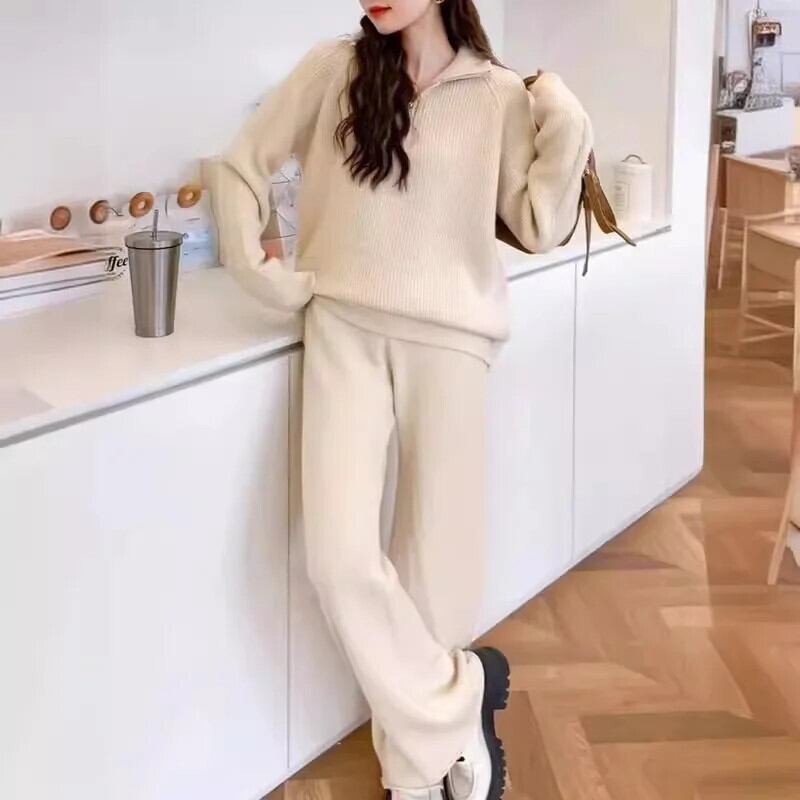 [EWQ] アンスカジュアル stijl opstaande kraag trui en wijde pijpen broek 2-delige set effen dameskleding 2024 herfst nieuwe GZ549