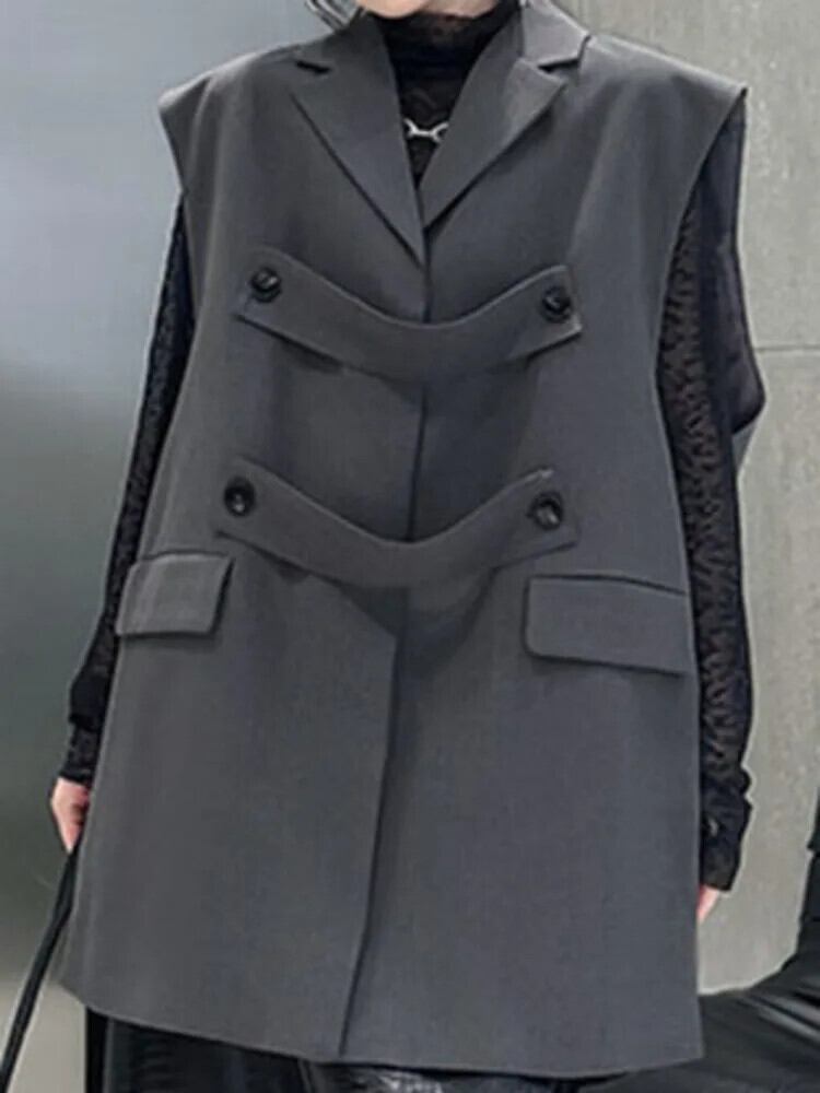 [Ewq] neue Mode Anzug Kragen ärmellose Weste Oberbekleidung Knöpfe Strickjacke schwarz grau Jacken für Frauen 2024 Frühling Sommer 16 u8577