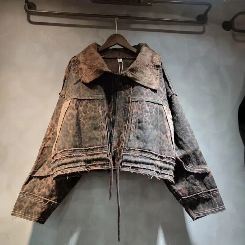 [Ewq] tun alte Leopard ジーンズ jacke Tweed Rand kurze ジーンズ Mäntel Frauen rosa Jacke Kleidung Herbst neue Flut 16 o1311
