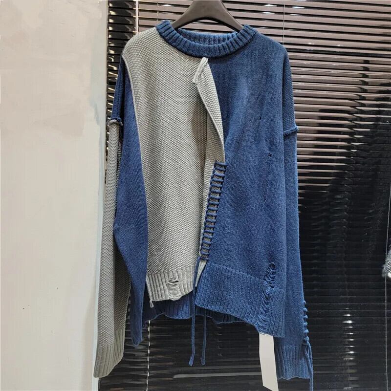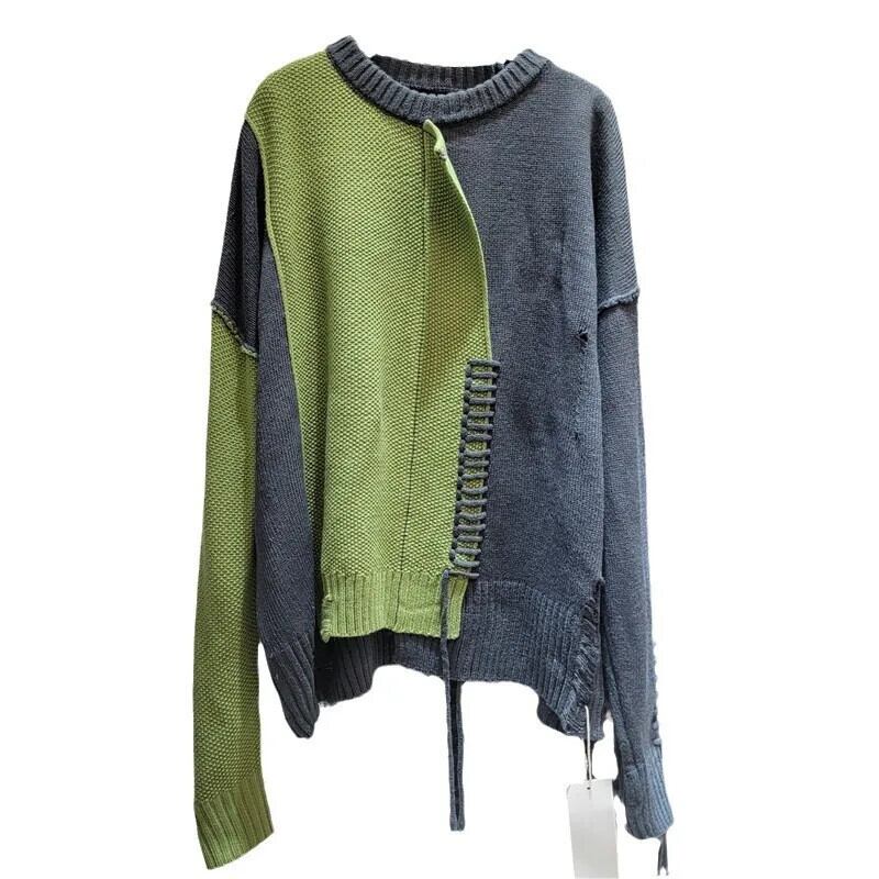 [Ewq] アメリカンストリート Kontrast farben gespleißt プルオーバー Langarm unregelmäßig プルオーバー トップス Herbst neu 16 o2310