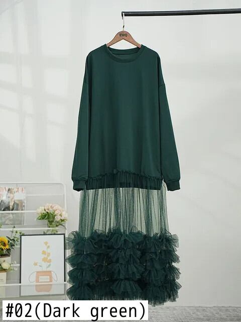 [Ewq] エレガント langärmlige Landebahn einteilige Kleider O-Ausschnitt dunkelgrün lange schwarze Robe Winter 2024 Herbst スウェットシャツ Kleider u641 ウィンター 冬物