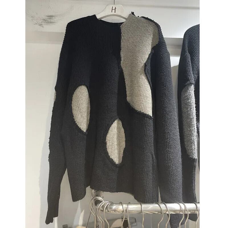 [EWQ] Kontrast Farben Langarm ストリート Gestrickte プルオーバー Lose Alle-spiel Mode Frauen ジャンパー 2024 Herbst Neue Flut 16O2577