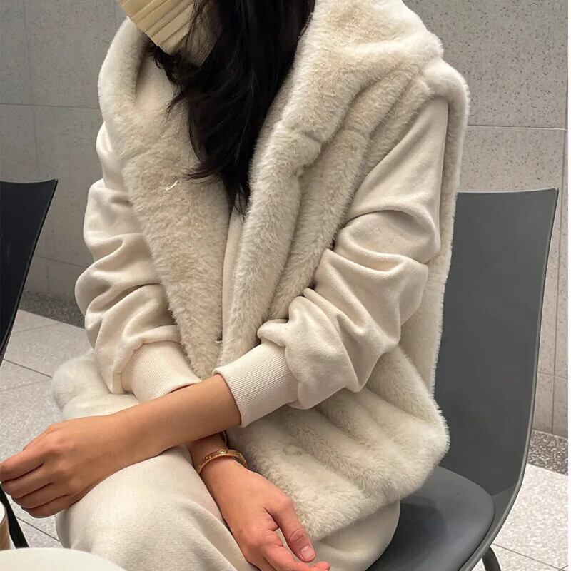 [Ewq] koreanische schicke Kapuze ärmel los Solide Dicke und warme Westen loss All-Match-Damen Weste Winter 2024 Herbst neu 16 o1590 ウィンター 冬物 ソリッドカラー