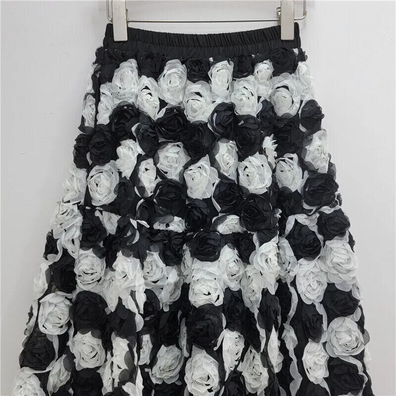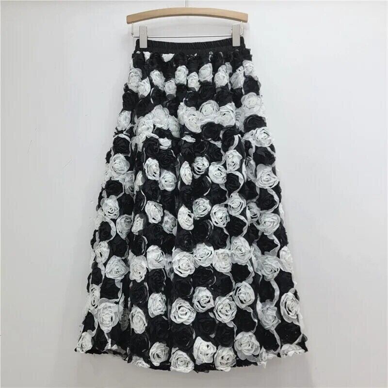 [EWQ] Kontrast Farben 3D Floral Mode Weibliche Rock Hohe Taille Alle-spiel Frauen Röcke 2024 herbst Neue 16O2223 花柄
