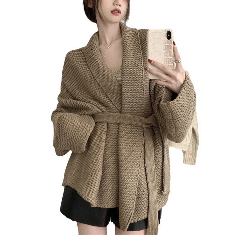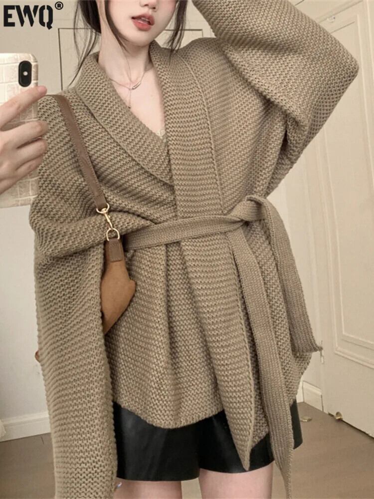 【Ewq】solid einfache Langarm V-Ausschnitt Strickjacke Bandage lässig Frauen ウィンター プルオーバー マンテル 2024 Herbst neu 16 o2333 冬物 ソリッドカラー